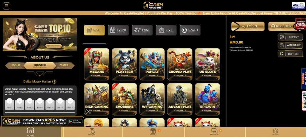 CashKingBet is the fastest growing online casino platform Malaysia. Fast deposit, Fast withdrawal, Fast service 24 hour I SCRPLAY PARTNERSHIP